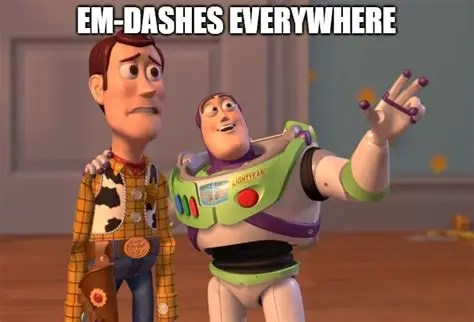 It points to the controversy over this much maligned piece of punctuation. It’s AI’s use of the em dash that points to it’s desire to sound more human – more like the way we think – that is so ironic here. AI has been trained on great literature that is full of the em dash, so of course it wants to use it to give it a human touch. Alas, it has backfired.